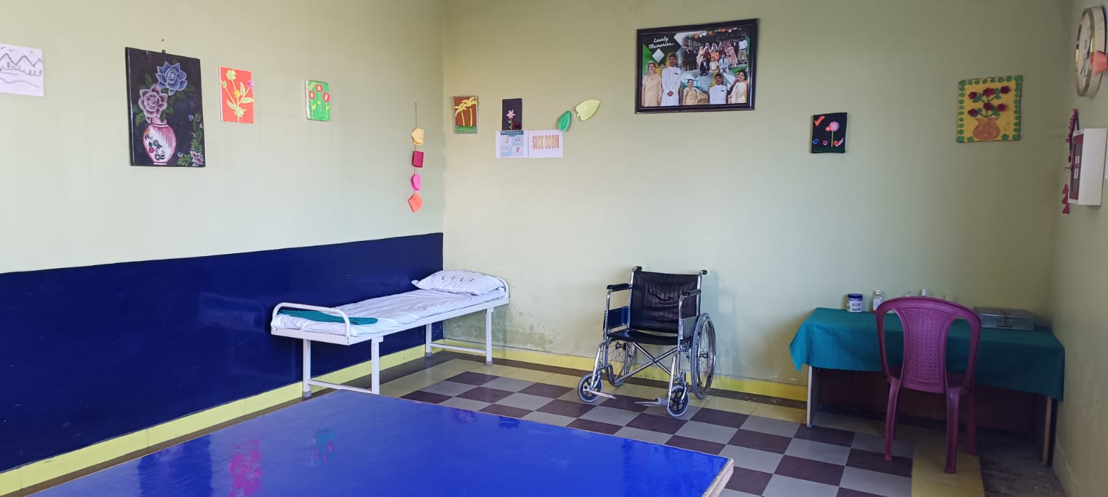 The school has a sick room with two beds for medical emergency of the students. A well stocked first aid box is available for immediate treatment. However the school also has contract with the nursing home just outside the school for major illness/accidents.