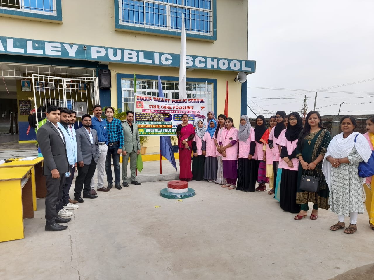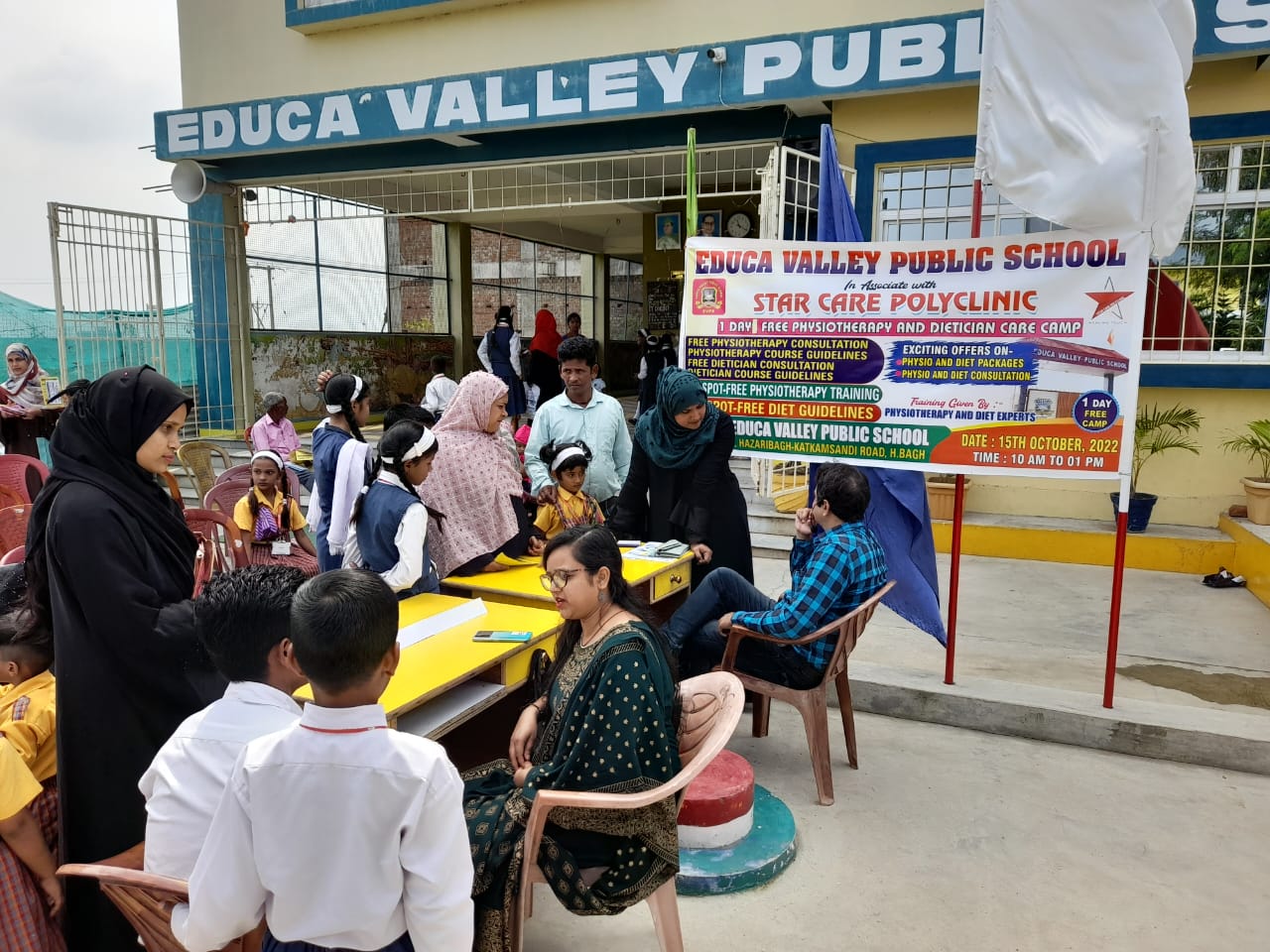 Time to time medical check up of the students is done by the doctors. The First Aid kit fully equipped is kept handy for casualties that may occur in the class room, on the play ground, in the science lab.